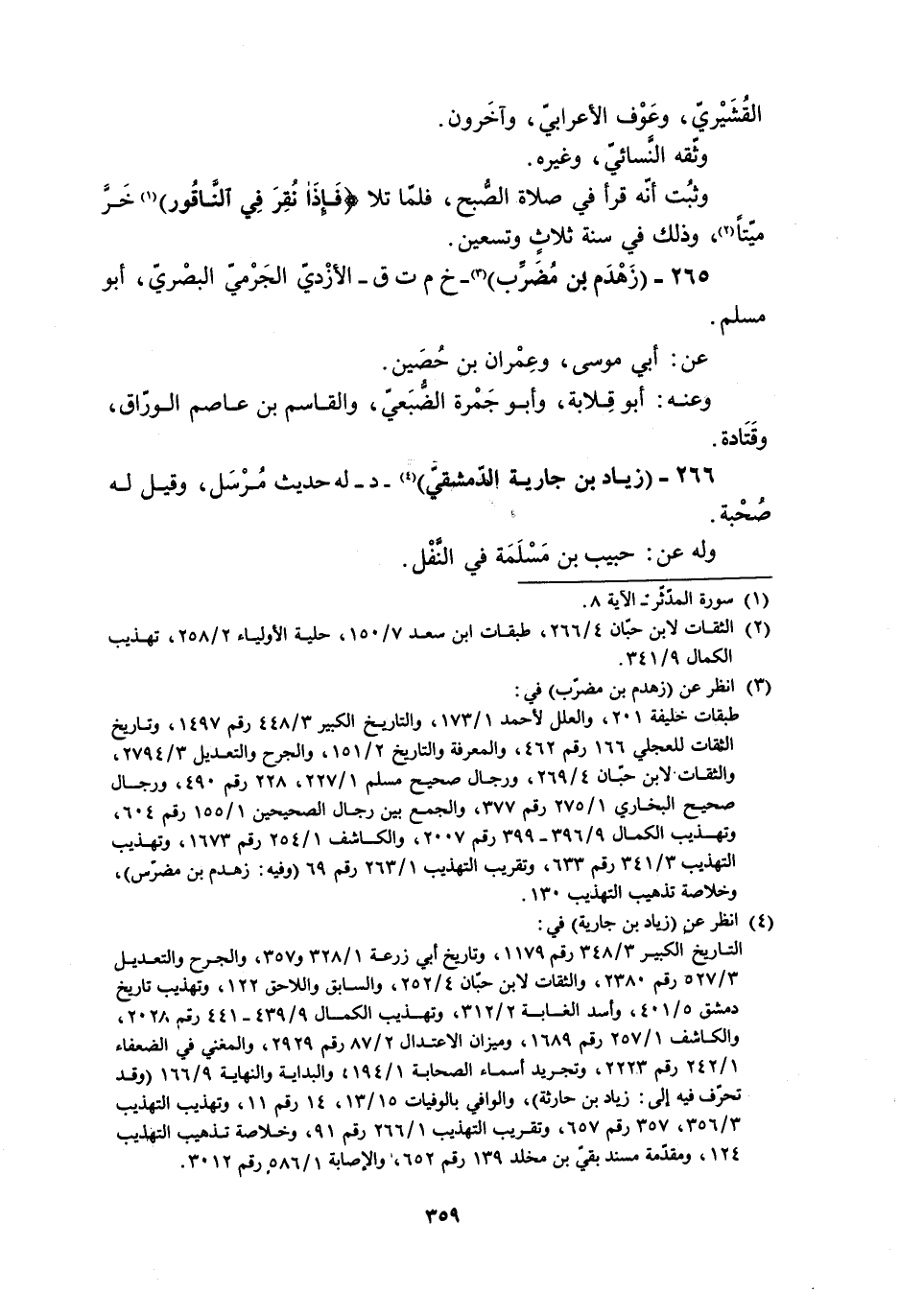 266- (زِيَادُ بْنُ جَارِيَةَ الدِّمَشْقِيُّ) [4]- د- لَهُ حَدِيثٌ مُرْسَلٌ، وَقِيلَ لَهُ صُحْبَةٌ.