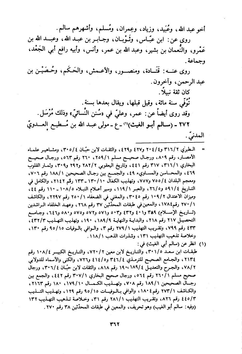 272- (سالم أبو الغيث) [1]- ع- مَوْلَى عَبْدِ اللَّهِ بْنِ مُطِيعٍ الْعَدَوِيُّ المدنيّ.