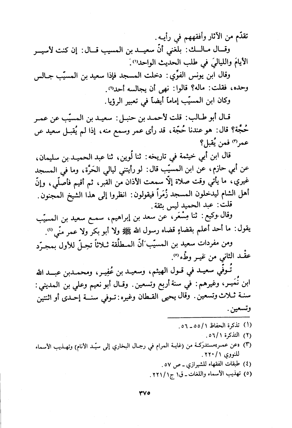 قَالَ أَبُو طَالِبٍ: قُلْتُ لِأَحْمَدَ بْنِ حَنْبَلٍ: سَعِيدُ بْنُ الْمُسَيِّبِ عَنْ عُمَرَ حُجَّةٌ؟ قَالَ: هُوَ عِنْدَنَا حُجَّةٌ، قَدْ رَأَى عُمَرَ وَسَمِعَ مِنْهُ، إِذَا لَمْ يُقْبَلْ سَعِيدُ عَنْ عُمَرَ [3] فَمَنْ يُقْبَلُ؟