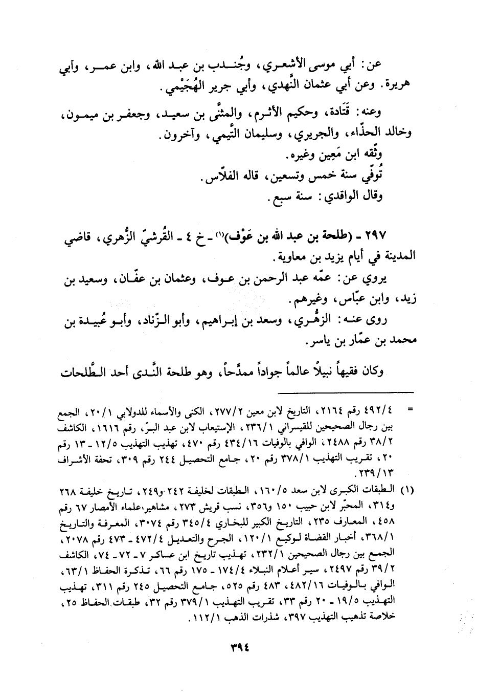 297- (طلحة بن عبد الله بن عوف) [1]- خ 4- القرشيّ الزّهري، قَاضِي الْمَدِينَةِ فِي أَيَّامِ يَزِيدَ بْنِ مُعَاوِيَةَ.