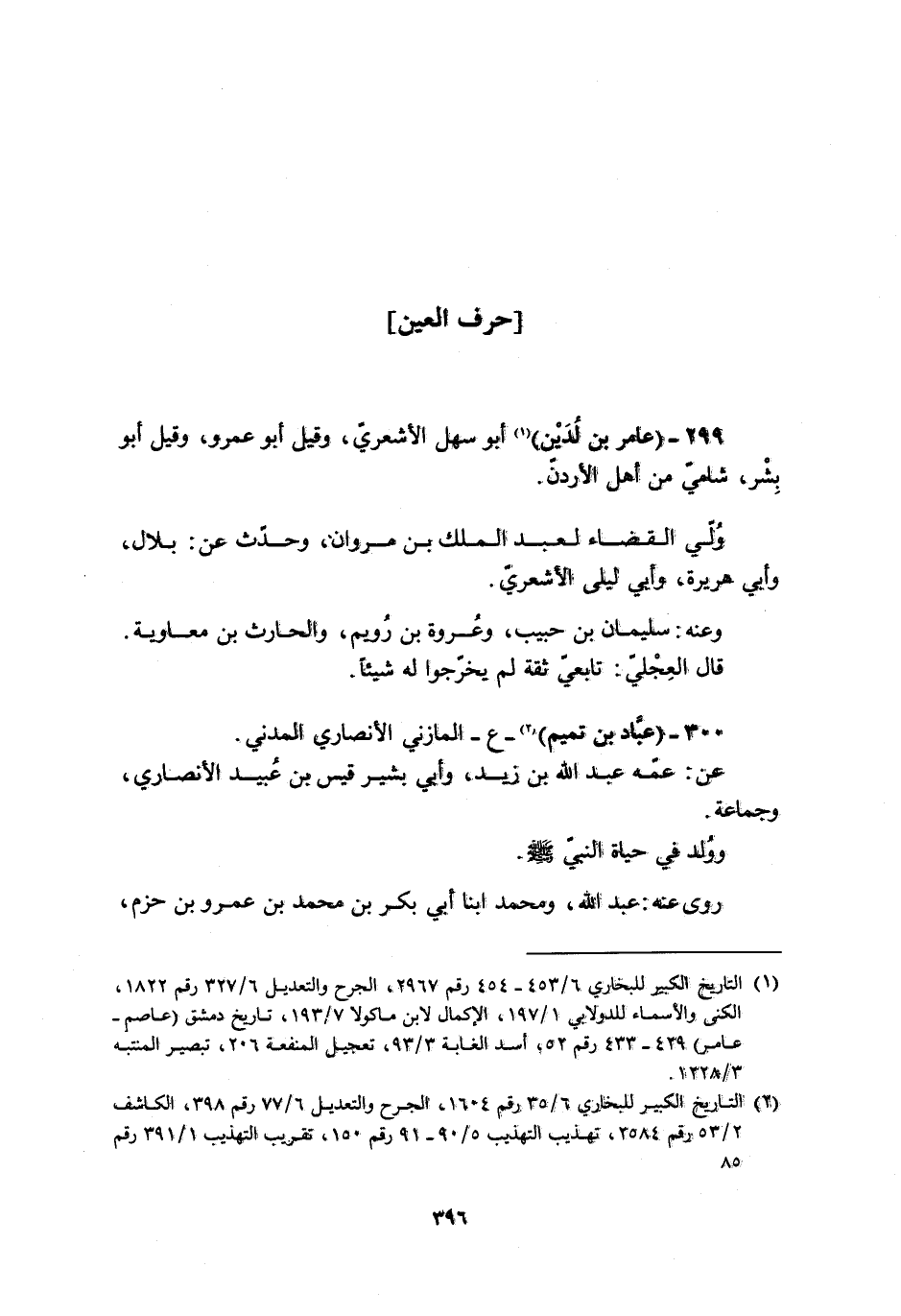 [1] التاريخ الكبير للبخاريّ 6/ 453- 454 رقم 2967، الجرح والتعديل 6/ 327 رقم 1822، الكنى والأسماء للدولابي 1/ 197، الإكمال لابن ماكولا 7/ 193، تاريخ دمشق (عاصم- عامر) 429- 433 رقم 52، أسد الغابة 3/ 93، تعجيل المنفعة 206، تبصير المنتبه 3/ 1228.