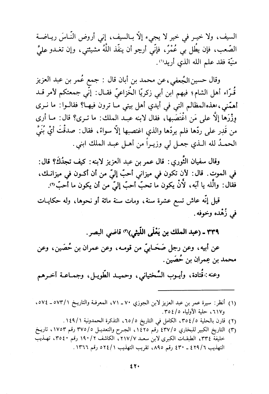 [2] قارن بالحلية 5/ 354، الكامل في التاريخ 5/ 65، التذكرة الحمدونية 1/ 149.