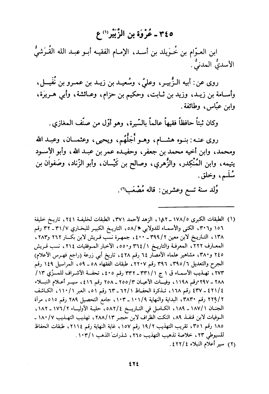 345- عروة بن الزّبير [1] ع ابْنِ الْعَوَّامِ بْنِ خُوَيْلِدِ بْنِ أَسَدٍ، الإِمَامُ الْفَقِيهُ أَبُو عَبْدِ اللَّهِ الْقُرَشِيُّ الأَسَدِيُّ الْمَدَنِيُّ.