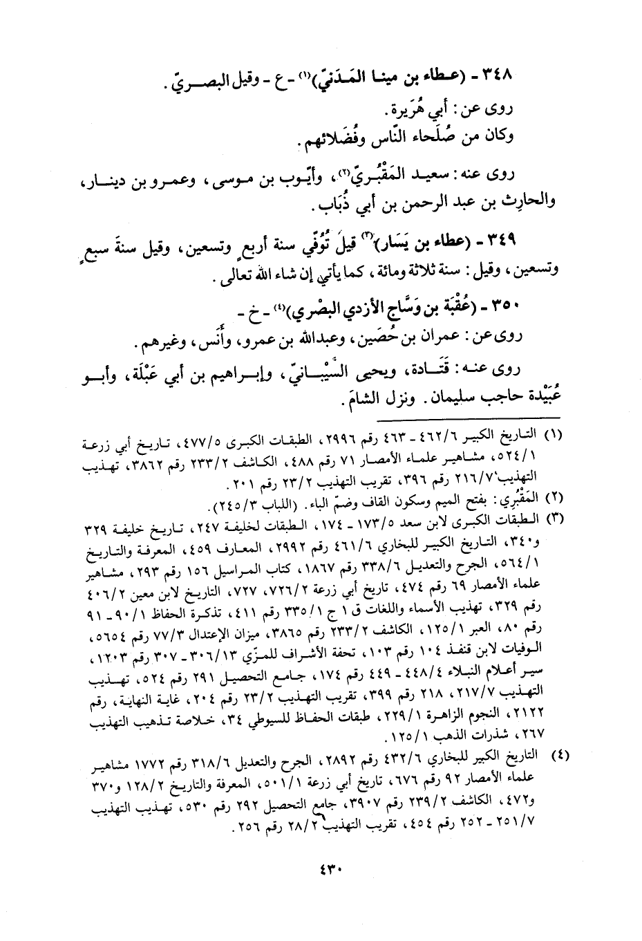 349- (عطاء بن يسار) [3] قيل توفّي سنة أربع وتسعين، وقيل سنة سبع وتسعين، وقيل: سنة ثلاثة ومائة، كما يأتي إن شاء الله تعالى.