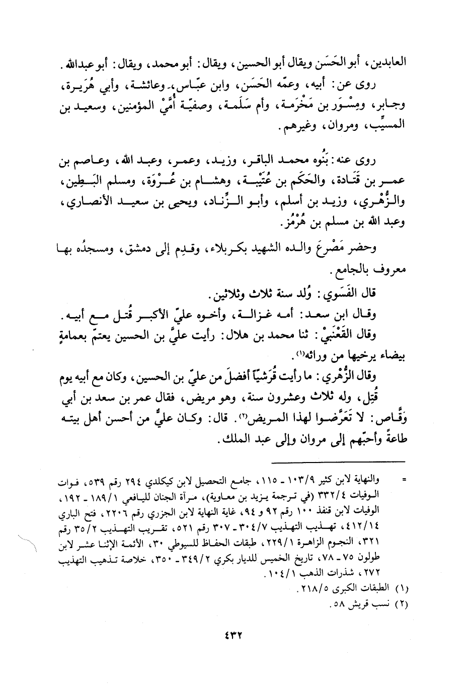 العابدين، أبو الحسن ويقال أبو الحسين، وَيُقَالُ: أَبُو مُحَمَّدٍ، وَيُقَالُ: أَبُو عَبْدِ اللَّهِ.
