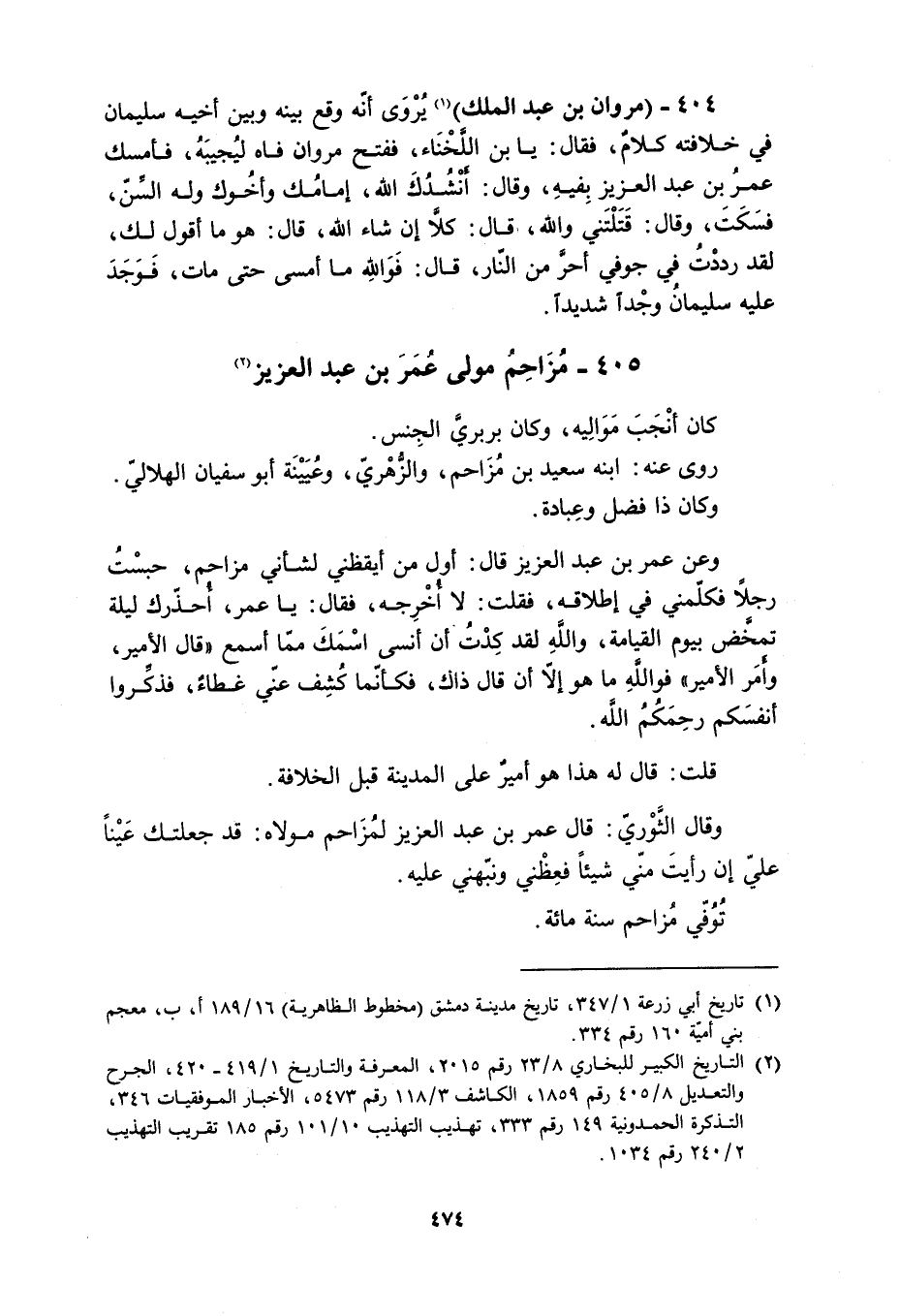 405- مزاحم مَوْلَى عُمَرَ بْنِ عَبْدِ الْعَزِيزِ [2] كَانَ أنْجَبَ مَوَالِيهِ، وَكَانَ بَرْبَرِيَّ الْجِنْسِ.