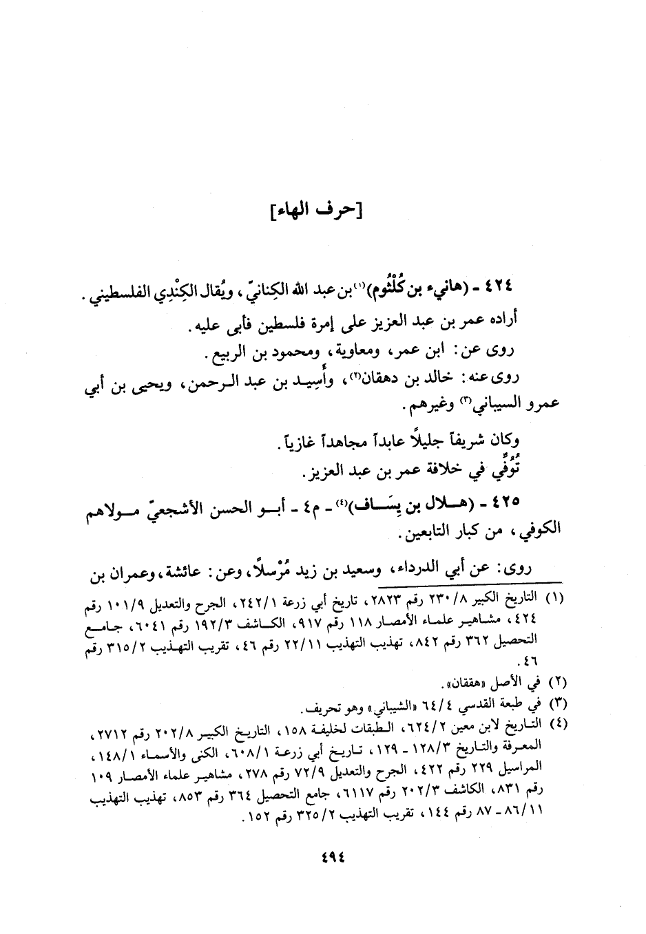 424- (هَانِئُ بْنُ كُلْثُومَ) [1] بْنِ عَبْدِ اللَّهِ الْكِنَانِيُّ، وَيُقَالُ الْكِنْدِيُّ الْفِلَسْطِينِيُّ.