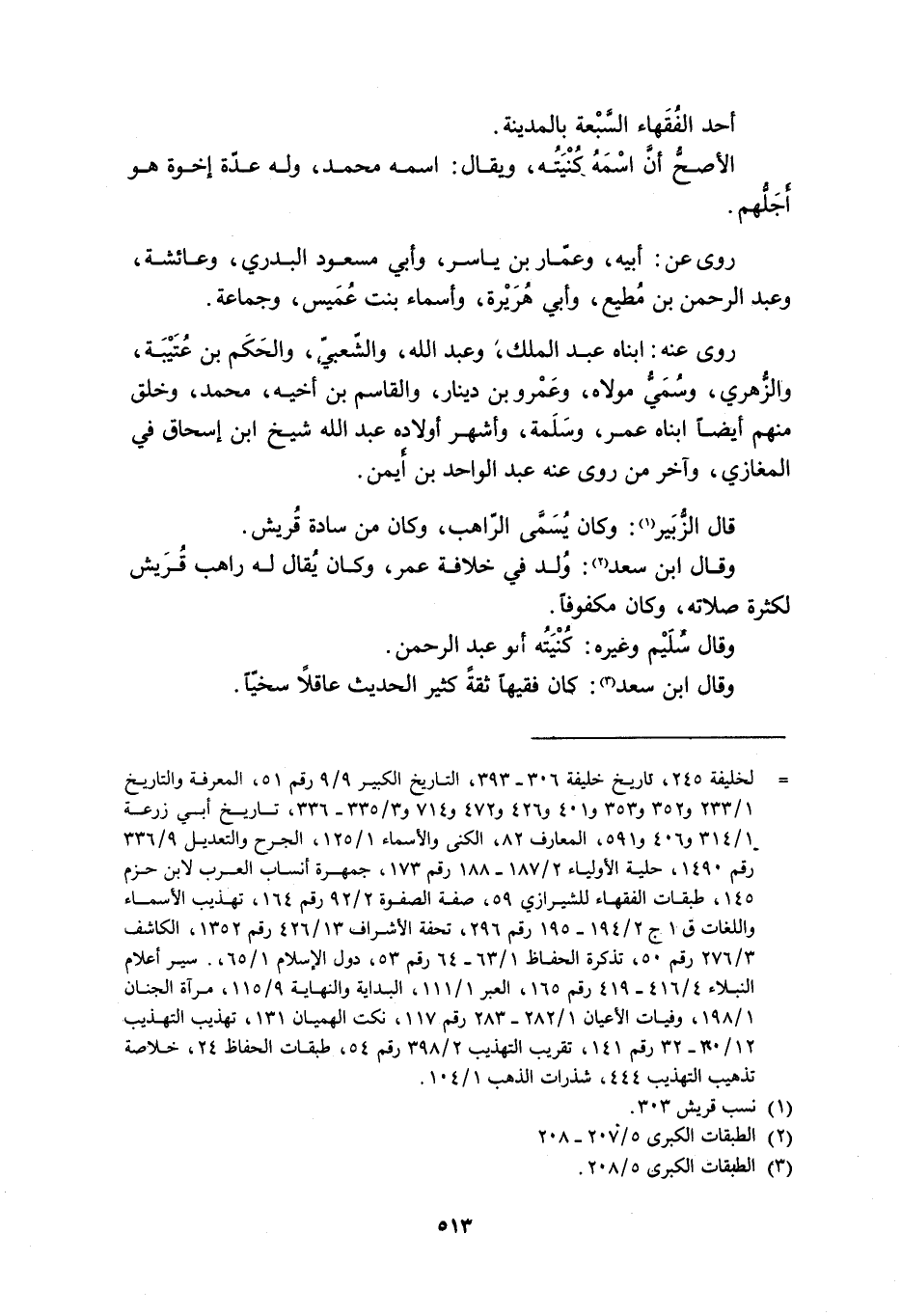 [ () ] لخليفة 245، تاريخ خليفة 306- 393، التاريخ الكبير 9/ 9 رقم 51، المعرفة والتاريخ 1/ 233 و 352 و 353 و 401 و 426 و 472 و 714 و 3/ 335- 336، تاريخ أبي زرعة 1/ 314 و 406 و 591، المعارف 82، الكنى والأسماء 1/ 125، الجرح والتعديل 9/ 336 رقم 1490، حلية الأولياء 2/ 187- 188 رقم 173، جمهرة أنساب العرب لابن حزم 145، طبقات الفقهاء للشيرازي 59، صفة الصفوة 2/ 92 رقم 164، تهذيب الأسماء واللغات ق 1 ج 2/ 194- 195 رقم 296، تحفة الأشراف 13/ 426 رقم 1352، الكاشف 3/ 276 رقم 50، تذكرة الحفاظ 1/ 63- 64 رقم 53، دول الإسلام 1/ 65،. سير أعلام النبلاء 4/ 416- 419 رقم 165، العبر 1/ 111، البداية والنهاية 9/ 115، مرآة الجنان 1/ 198، وفيات الأعيان 1/ 282- 283 رقم 117، نكت الهميان 131، تهذيب التهذيب 12/ 30- 32 رقم 141، تقريب التهذيب 2/ 398 رقم 54، طبقات الحفاظ 24، خلاصة تذهيب التهذيب 444، شذرات الذهب 1/ 104.