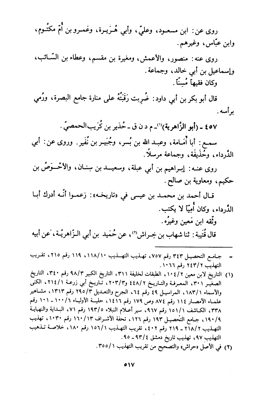 457- (أبو الزّاهرية) [1]- م د ن ق- حدير بن كريب الحمصيّ.