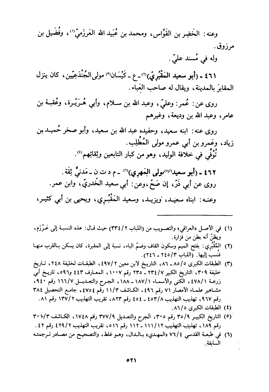 [2] المقبري: بفتح الميم وسكون القاف وضمّ الباء، نسبة إلى المقبرة، كان يسكن بالقرب منها فنسب إليها. (اللباب 3/ 245- 246) .