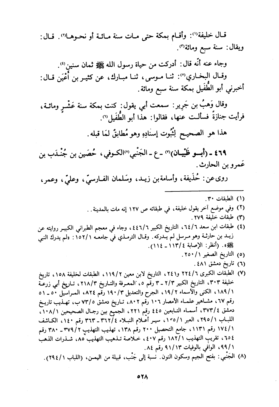 469- (أبو ظبيان) [7]- ع- الْجَنْبِيُّ [8] الْكُوفِيُّ، حُصَيْنُ بْنُ جُنْدُبِ بْنِ عَمْرِو بن الحارث.
