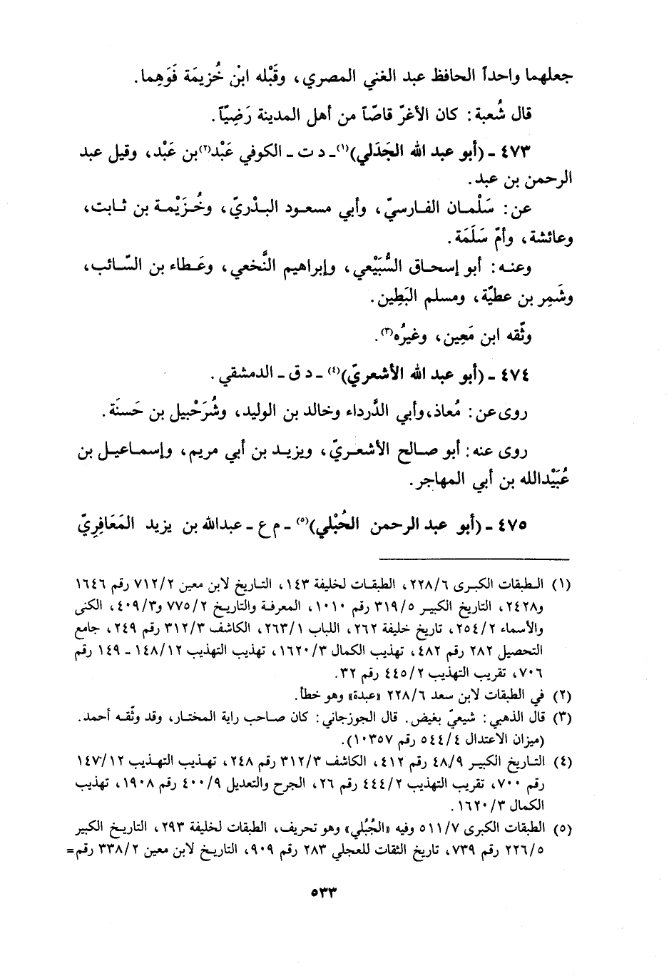 [5] الطبقات الكبرى 7/ 511 وفيه «الجبليّ» وهو تحريف، الطبقات لخليفة 293، التاريخ الكبير 5/ 226 رقم 739، تاريخ الثقات للعجلي 283 رقم 909، التاريخ لابن معين 2/ 338 رقم