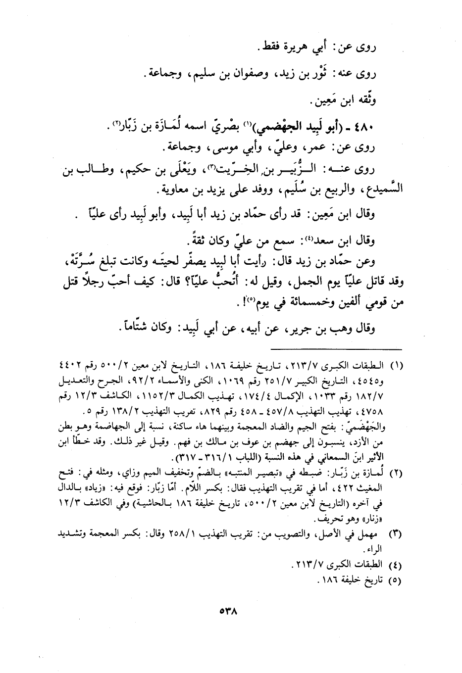 [2] لمازة بن زبّار: ضبطه في «تبصير المنتبه» بالضمّ وتخفيف الميم وزاي، ومثله في: فتح المغيث 422، أما في تقريب التهذيب فقال: بكسر اللّام. أمّا زبّار: فوقع فيه: «زياد» بالدال في آخره (التاريخ لابن معين 2/ 500، تاريخ خليفة 186 بالحاشية) وفي الكاشف 3/ 12 «زنار» وهو تحريف.