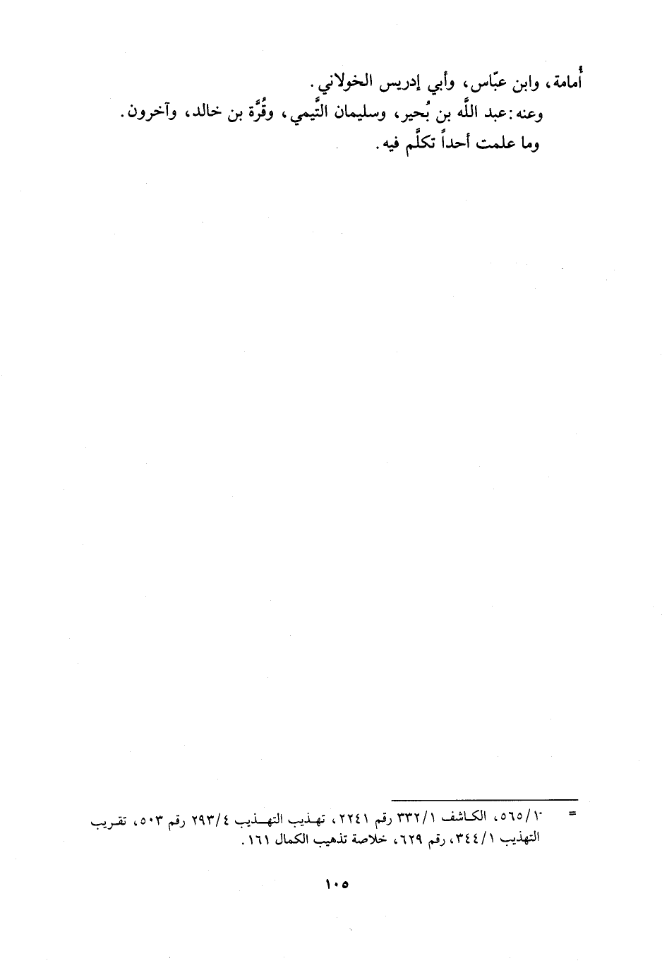 [1] / 565، الكاشف 1/ 332 رقم 2241، تهذيب التهذيب 4/ 293 رقم 503، تقريب التهذيب 1/ 344، رقم 629، خلاصة تذهيب الكمال 161.