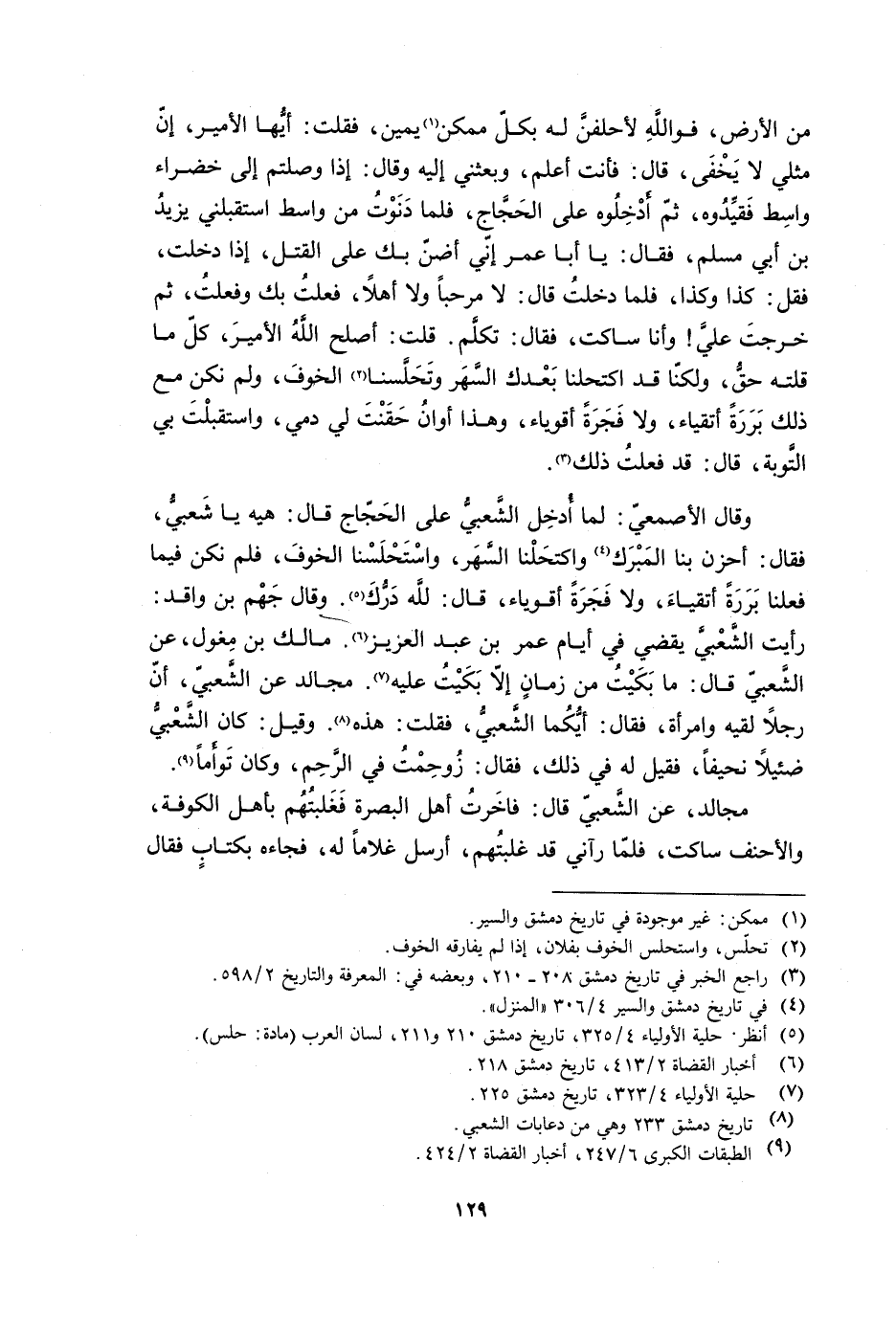 [3] راجع الخبر في تاريخ دمشق 208- 210، وبعضه في: المعرفة والتاريخ 2/ 598.