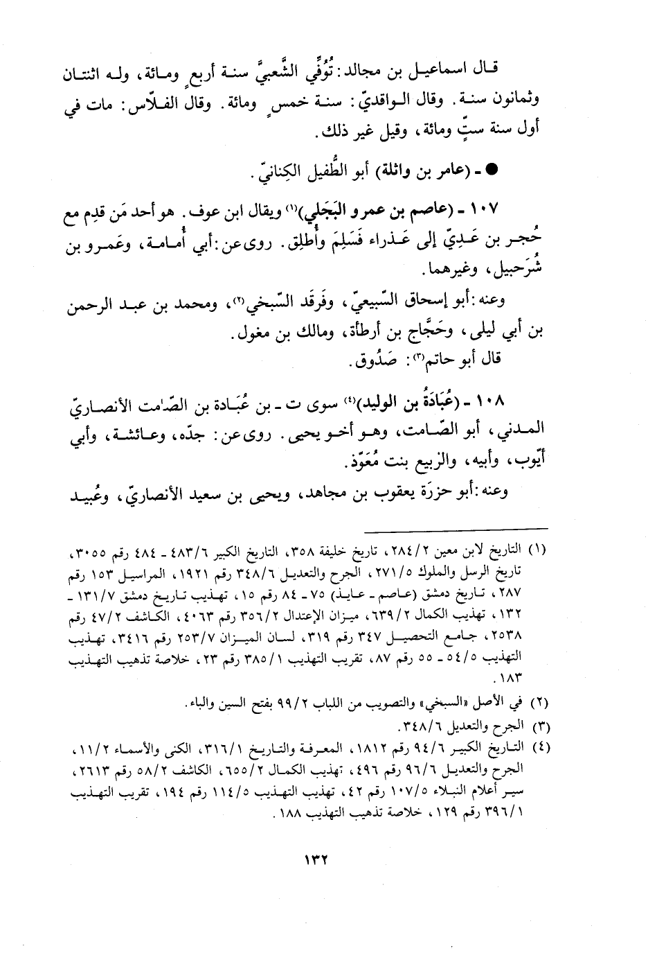 [1] التاريخ لابن معين 2/ 284، تاريخ خليفة 358، التاريخ الكبير 6/ 483- 484 رقم 3055، تاريخ الرسل والملوك 5/ 271، الجرح والتعديل 6/ 348 رقم 1921، المراسيل 153 رقم 287، تاريخ دمشق (عاصم- عائذ) 75- 84 رقم 15، تهذيب تاريخ دمشق 7/ 131- 132، تهذيب الكمال 2/ 639، ميزان الاعتدال 2/ 356 رقم 4063، الكاشف 2/ 47 رقم 2538، جامع التحصيل 347 رقم 319، لسان الميزان 7/ 253 رقم 3416، تهذيب التهذيب 5/ 54- 55 رقم 87، تقريب التهذيب 1/ 385 رقم 23، خلاصة تذهيب التهذيب 183.