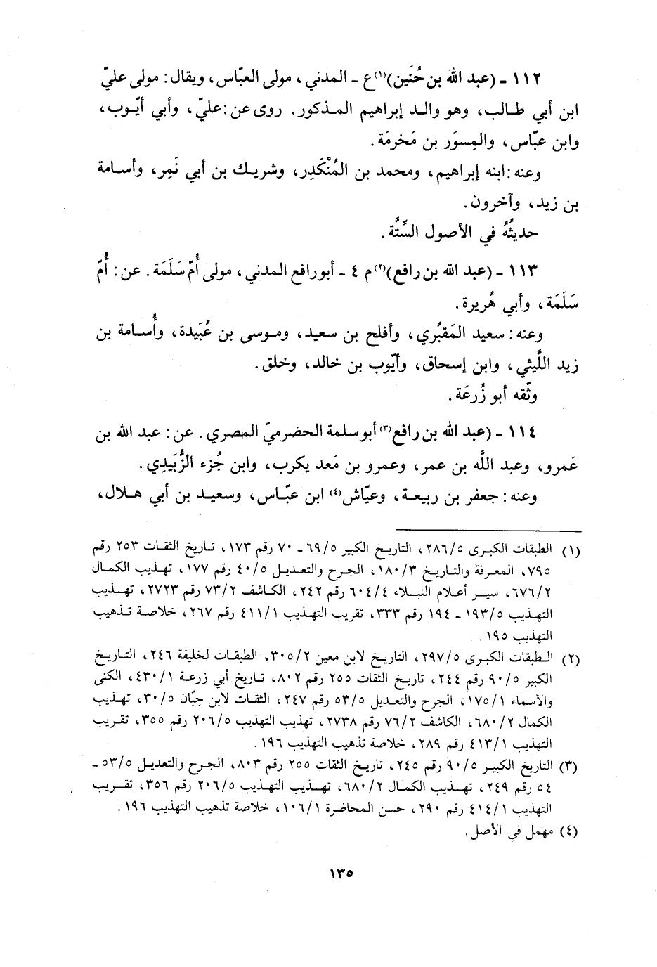 113- (عبد الله بن رافع) [2] م 4- أبو رافع المدني، مولى أُمِّ سَلَمَةَ. عَنْ: أُمِّ سَلَمَةَ، وَأَبِي هُرَيْرَةَ.