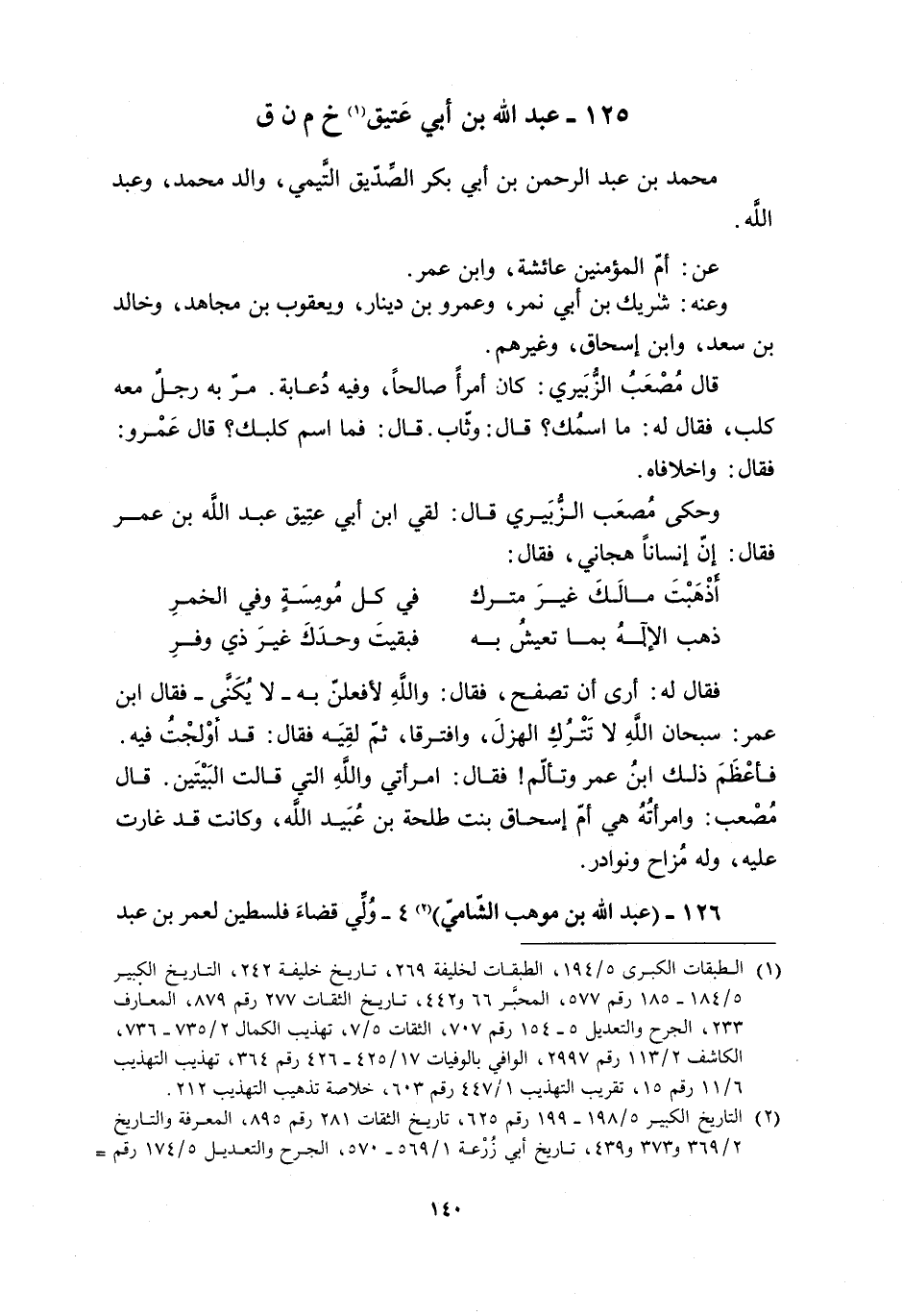 125- عبد الله بن أبي عتيق [1] خ م ن ق مُحَمَّدِ بْنِ عَبْدِ الرَّحْمَنِ بْنِ أَبِي بَكْرِ الصّدّيق التّيمي، وَالِدُ مُحَمَّدٍ، وَعَبْدِ اللَّهِ.