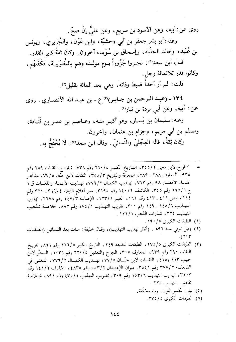 134- (عبد الرحمن بن جابر) [3] ع- بن عبد الله الأنصاري. رَوَى عَنْ: أَبِيهِ، وَعَنْ أَبِي بُرْدَةَ بْنِ نِيَارٍ [4] .