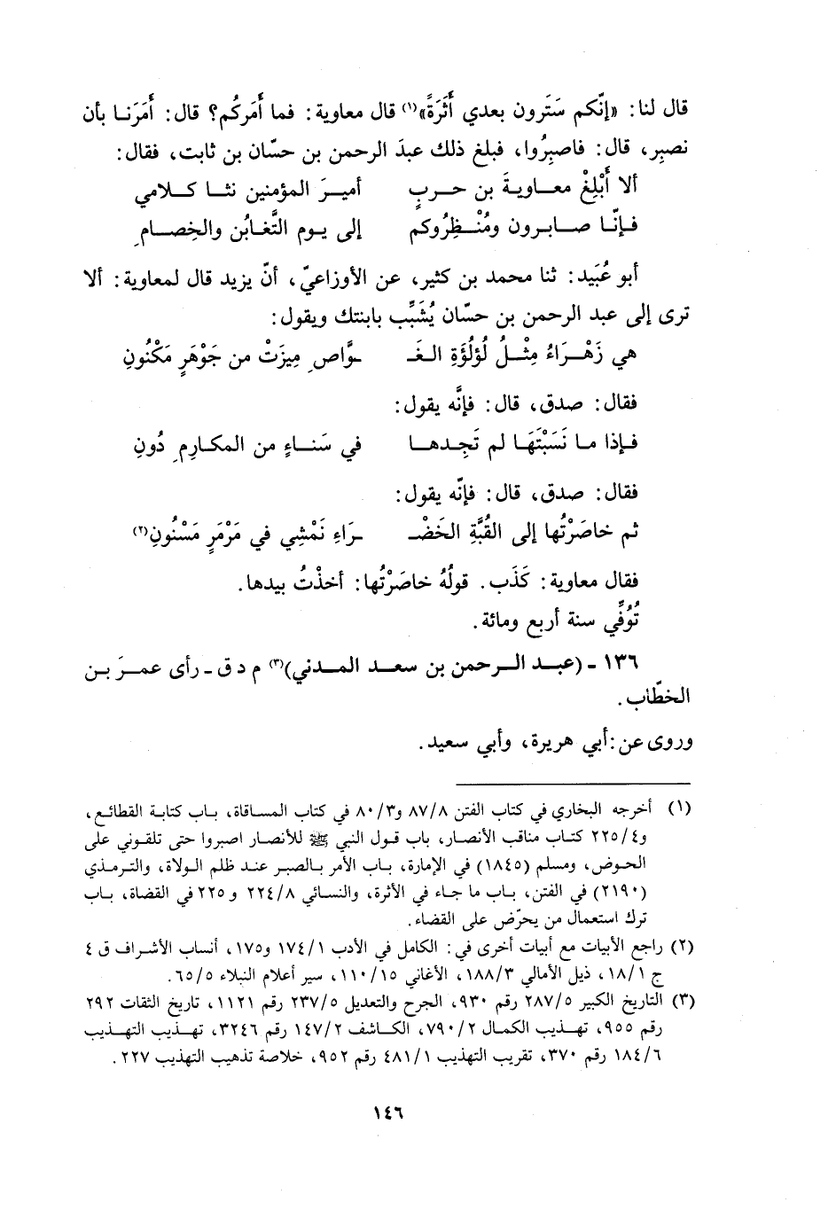 [2] راجع الأبيات مع أبيات أخرى في: الكامل في الأدب 1/ 174 و 175، أنساب الأشراف ق 4 ج 1/ 18، ذيل الأمالي 3/ 188، الأغاني 15/ 110، سير أعلام النبلاء 5/ 65.