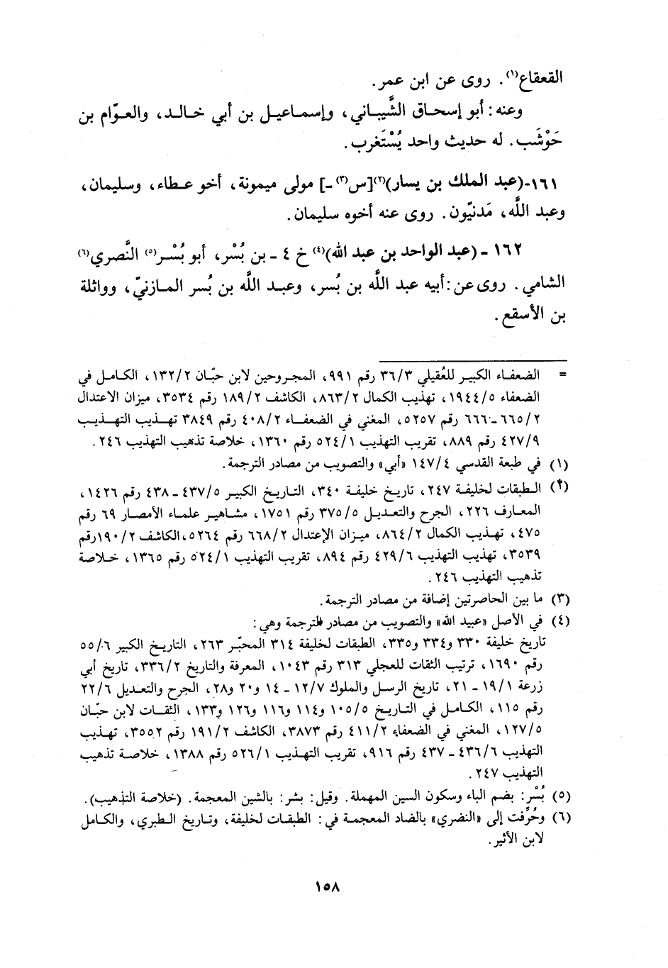 162- (عَبْدُ الْوَاحِدِ بْنُ عَبْدِ اللَّهِ) [4] خ 4- بن بسر، أبو بسر [5] النّصري [6] الشامي. رَوَى عَنْ: أَبِيهِ عَبْدِ اللَّهِ بْنِ بُسْرٍ، وَعَبْدِ اللَّهِ بْنِ بُسْرٍ الْمَازِنِيِّ، وَوَاثِلَةَ بْنِ الأسقع.