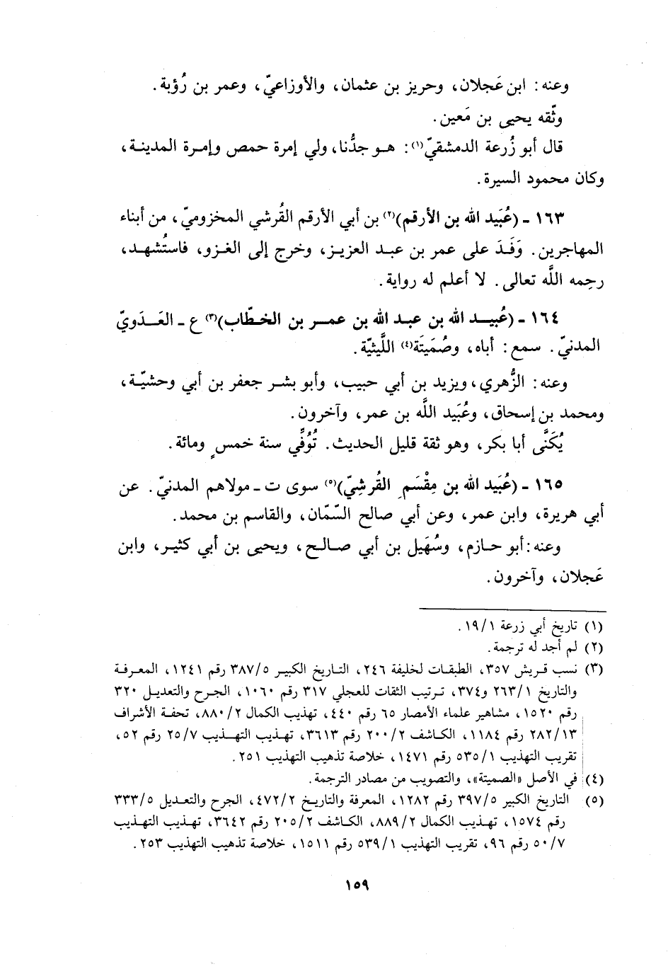 [3] نسب قريش 357، الطبقات لخليفة 246، التاريخ الكبير 5/ 387 رقم 1241، المعرفة والتاريخ 1/ 263 و 374، ترتيب الثقات للعجلي 317 رقم 1060، الجرح والتعديل 320 رقم 1520، مشاهير علماء الأمصار 65 رقم 440، تهذيب الكمال 2/ 880، تحفة الأشراف 13/ 282 رقم 1184، الكاشف 2/ 200 رقم 3613، تهذيب التهذيب 7/ 25 رقم 52، تقريب التهذيب 1/ 535 رقم 1471، خلاصة تذهيب التهذيب 251.