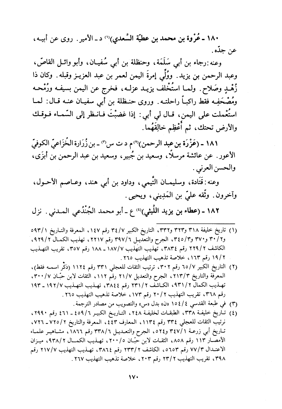 180- عروة بن محمد بن عطيّة السّعديّ) [1] د- الأمير. رَوَى عَنْ أَبِيهِ، عَنْ جَدِّهِ.
