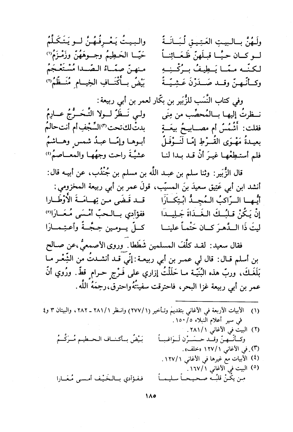 [1] الأبيات الأربعة في الأغاني بتقديم وتأخير (1/ 277) وانظر 1/ 281- 282، والبيتان 3 و 4 في سير أعلام النبلاء 5/ 150.