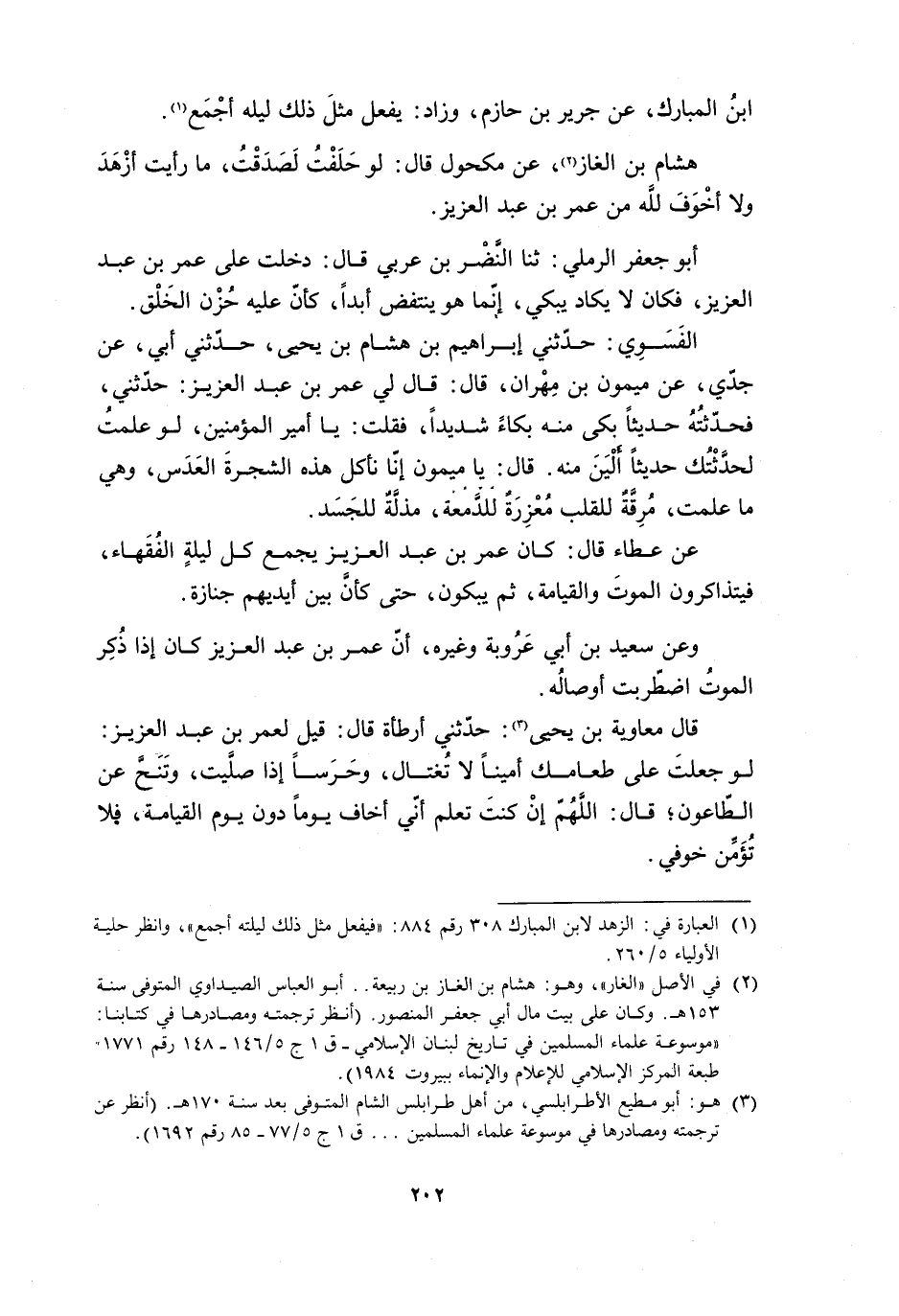 [1] العبارة في: الزهد لابن المبارك 308 رقم 884: «فيفعل مثل ذلك ليلته أجمع» ، وانظر حلية الأولياء 5/ 260.