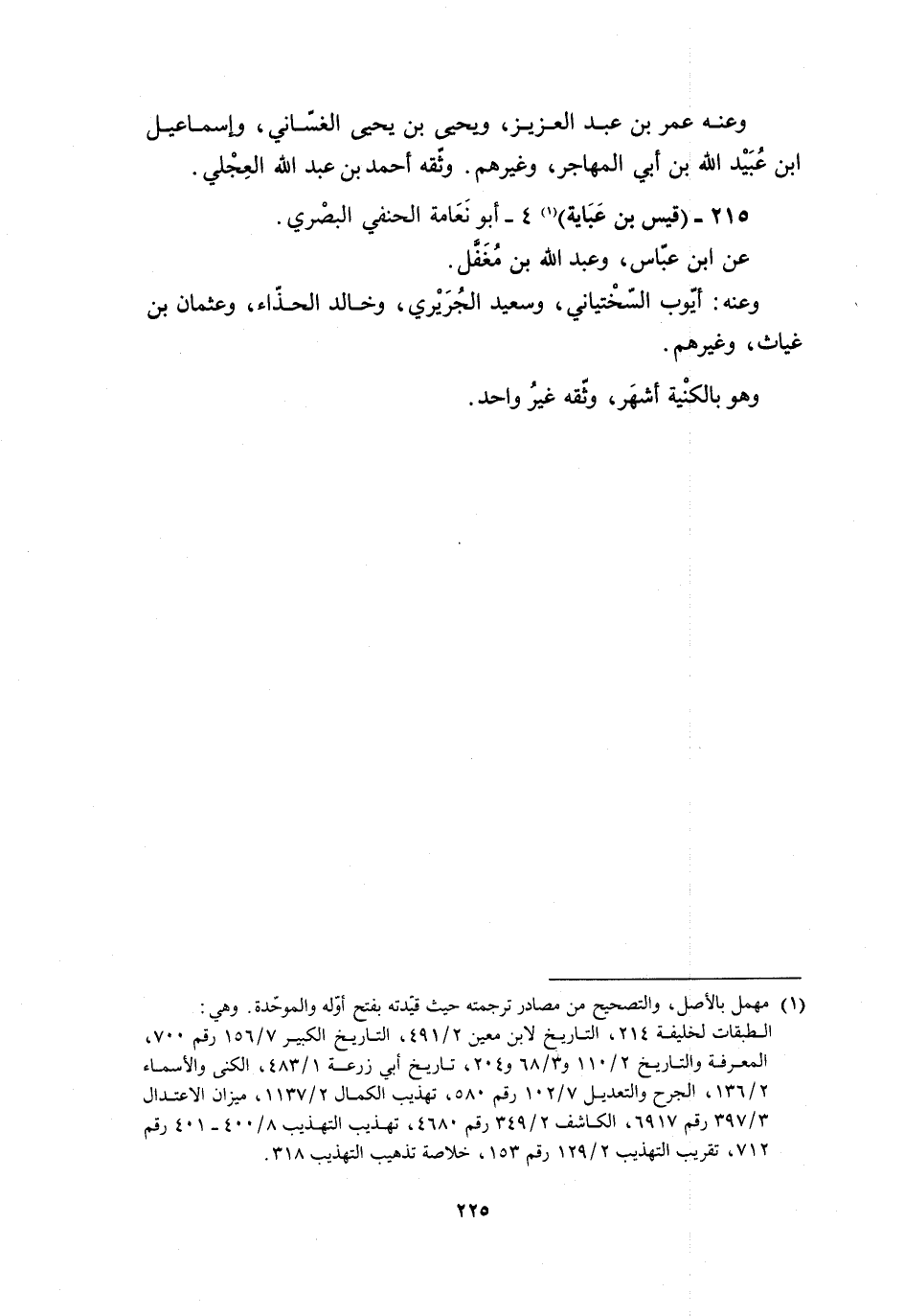 215- (قَيْسُ بْنُ عَبَايَةَ) [1] 4- أَبُو نَعَامَةَ الْحَنَفِيُّ الْبَصْرِيُّ.