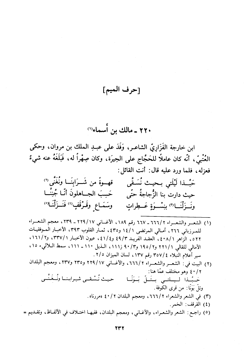 [5] راجع: الشعر والشعراء، والأغاني، ومعجم البلدان، ففيها اختلاف في الألفاظ، وتقديم