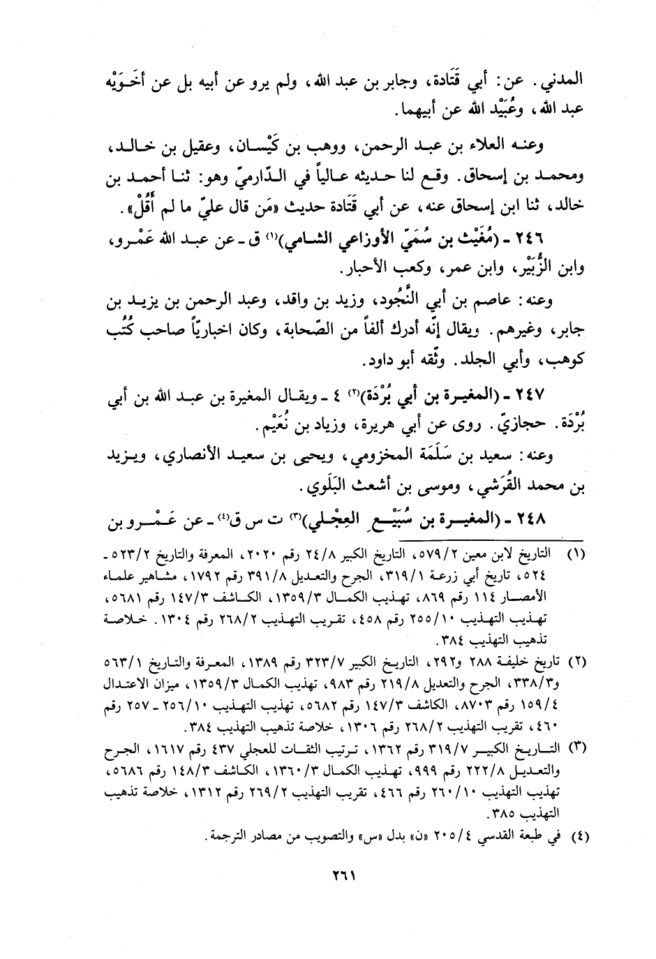 246- (مُغِيثُ بْنُ سُمَيٍّ الأَوْزَاعِيُّ الشَّامِيُّ) [1] ق- عَنْ عَبْدِ اللَّهِ عَمْرٍو، وَابْنِ الزُّبير، وَابْنِ عُمَرَ، وَكَعْبٍ الأَحْبَارِ.
