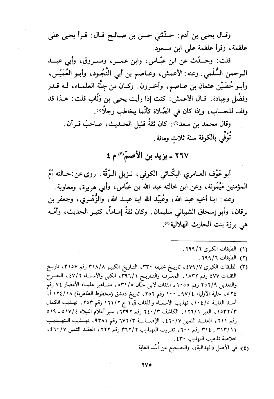 267- يزيد بن الأصمّ [3] م 4 أبو عوف العامري البكّائي الكوفي، نَزِيلُ الرِّقَّةِ. رَوَى عَنْ: خَالَتِهِ أُمِّ الْمُؤْمِنِينَ مَيْمُونَةَ، وَعَنِ ابْنِ خَالَتِهِ عَبْدِ اللَّهِ بْنِ عَبَّاسٍ، وَأَبِي هُرَيْرَةَ، وَمُعَاوِيَةَ.
