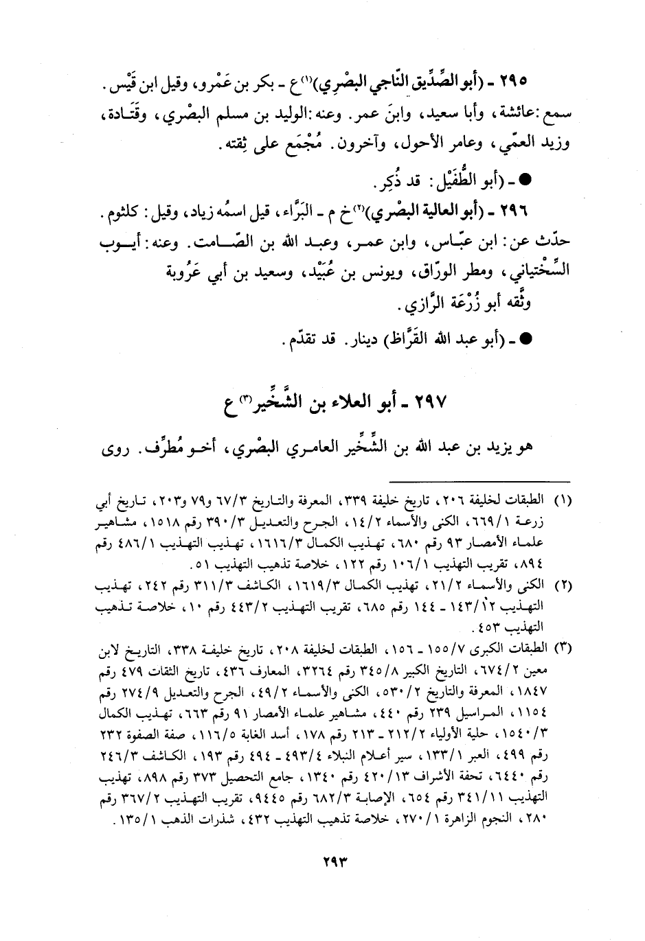 297- أَبُو الْعَلاءِ بْنُ الشِّخِّيرِ [3] ع هُوَ يَزِيدُ بْنُ عَبْدِ اللَّهِ بْنِ الشِّخِّيرِ العامري البصري، أخو مطرّف. روى