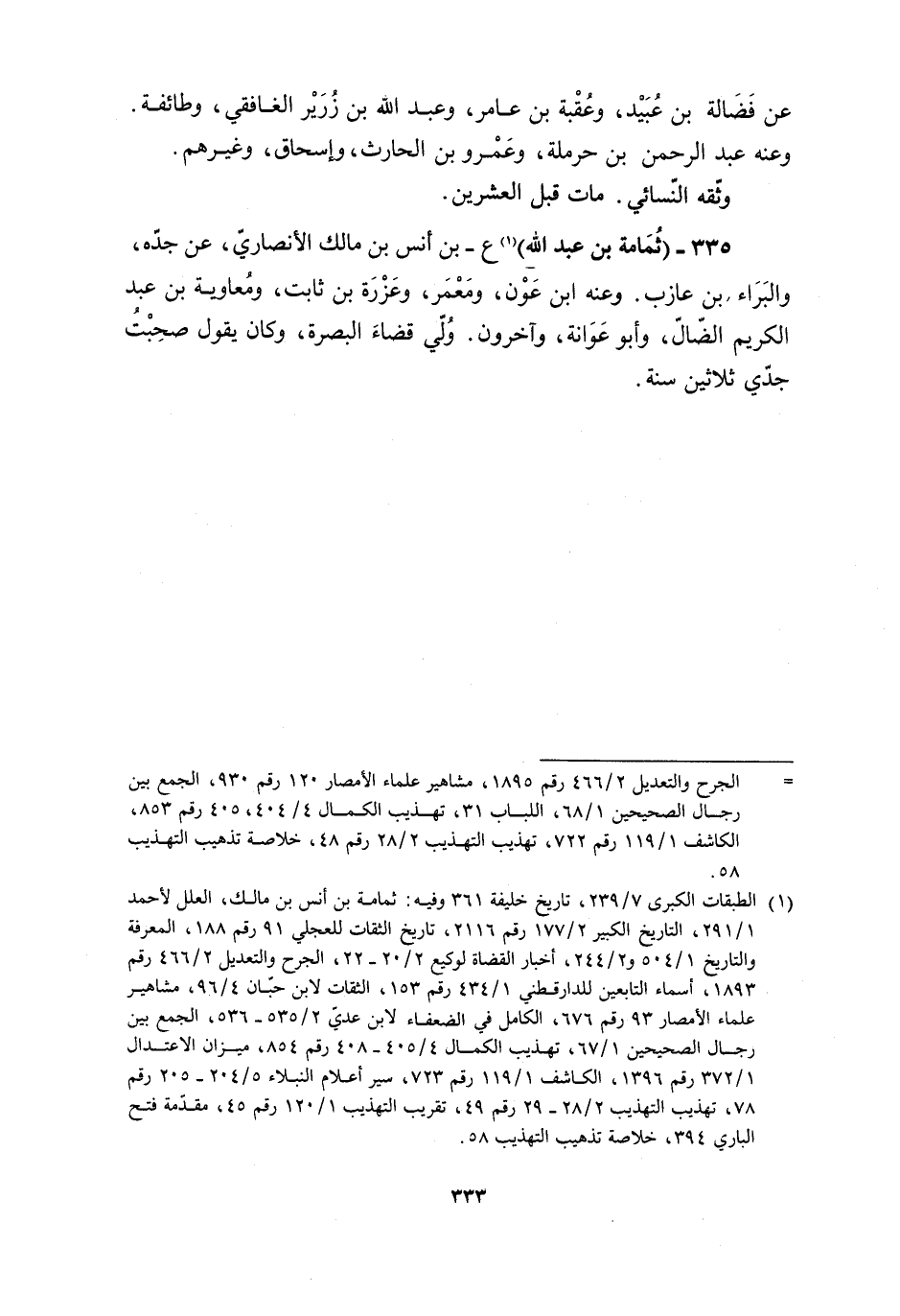 [1] الطبقات الكبرى 7/ 239، تاريخ خليفة 361 وفيه: ثمامة بن أنس بن مالك، العلل لأحمد 1/ 291، التاريخ الكبير 2/ 177 رقم 2116، تاريخ الثقات للعجلي 91 رقم 188، المعرفة والتاريخ 1/ 504 و 2/ 244، أخبار القضاة لوكيع 2/ 20- 22، الجرح والتعديل 2/ 466 رقم 1893، أسماء التابعين للدار للدّارقطنيّ 1/ 434 رقم 153، الثقات لابن حبّان 4/ 96، مشاهير علماء الأمصار 93 رقم 676، الكامل في الضعفاء لابن عديّ 2/ 535- 536، الجمع بين رجال الصحيحين 1/ 67، تهذيب الكمال 4/ 405- 408 رقم 854، ميزان الاعتدال 1/ 372 رقم 1396، الكاشف 1/ 119 رقم 723، سير أعلام النبلاء 5/ 204- 205 رقم 78، تهذيب التهذيب 2/ 28- 29 رقم 49، تقريب التهذيب 1/ 120 رقم 45، مقدّمة فتح الباري 394، خلاصة تذهيب التهذيب 58.