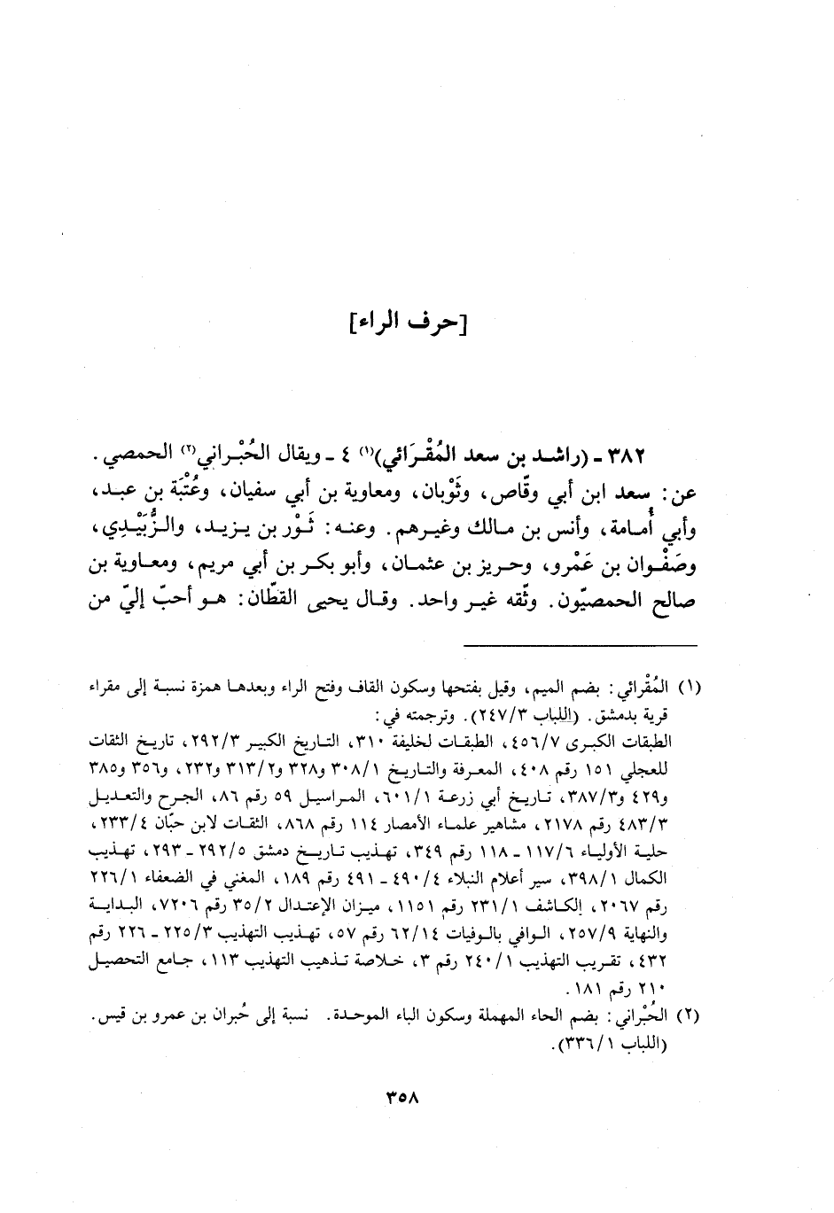 382- (راشد بن سعد المقرئي) [1] 4- ويقال الحبراني [2] الحمصي.