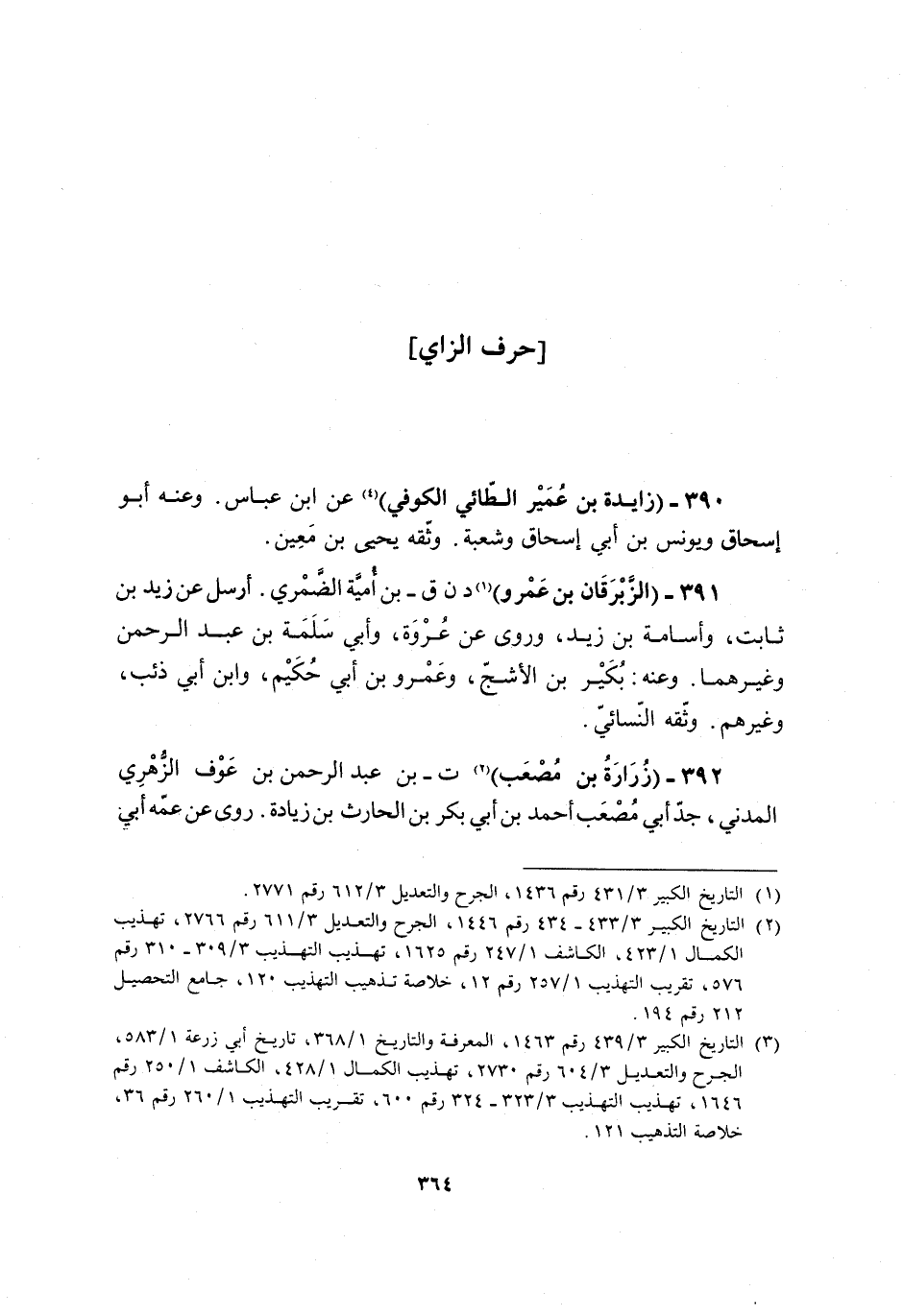 390- (زائدة بن عمير الطائي الكوفي) [1] عن ابن عباس. وَعَنْهُ أَبُو إِسْحَاقَ وَيُونُسُ بْنُ أَبِي إِسْحَاقَ وشعبة. وثقه يحيى بن معين.