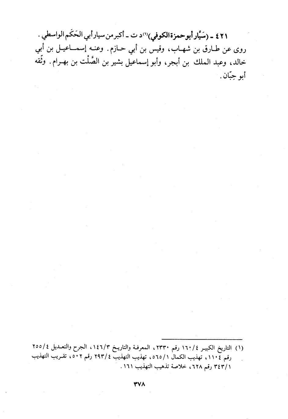 421- (سَيَّارٌ أَبُو حَمْزَةَ الْكُوفِيّ) [1] د ت- أَكْبَرُ مِنْ سَيَّارٍ أَبِي الْحَكَمِ الْوَاسِطِيِّ.