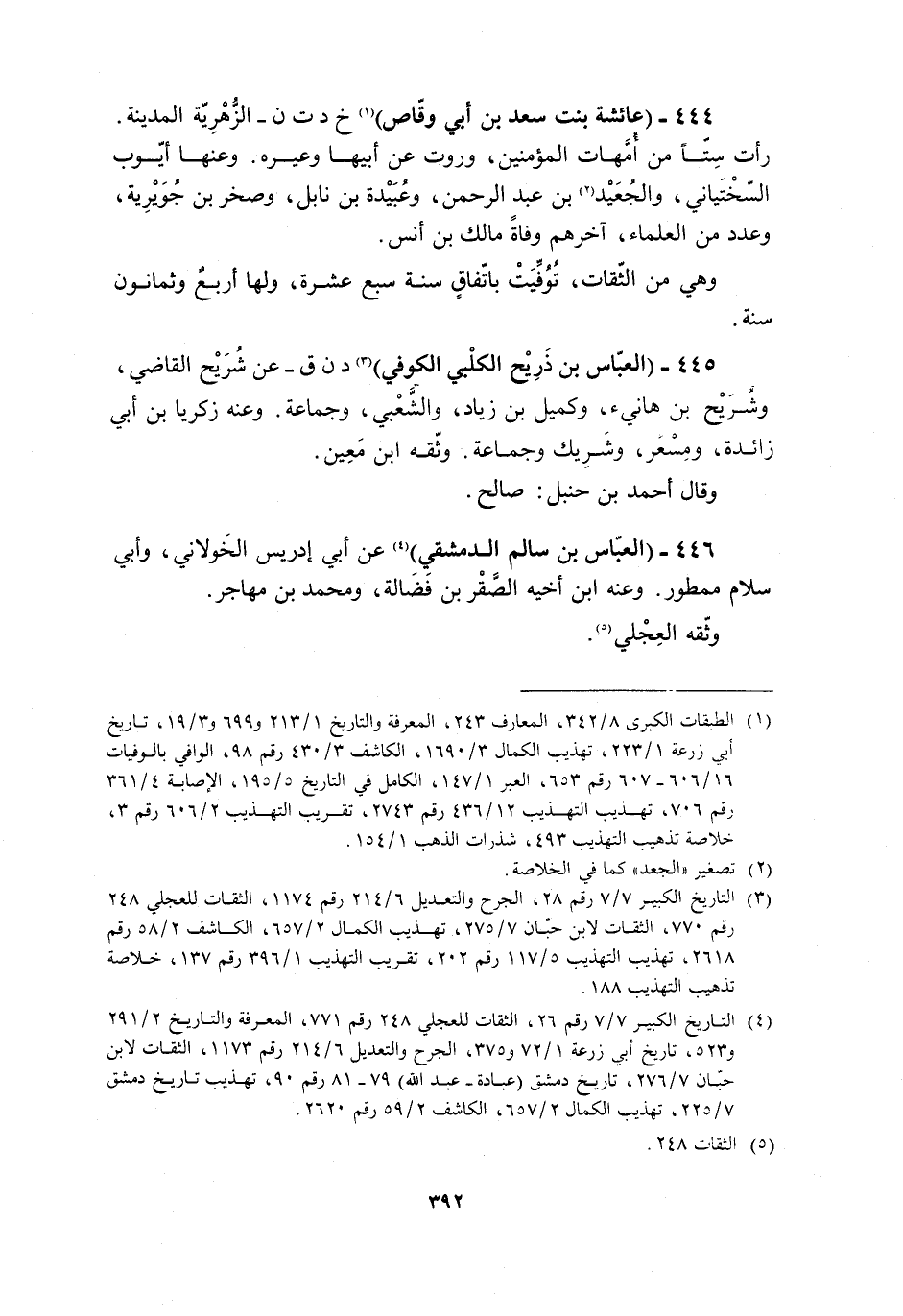[4] التاريخ الكبير 7/ 7 رقم 26، الثقات للعجلي 248 رقم 771، المعرفة والتاريخ 2/ 291 و 523، تاريخ أبي زرعة 1/ 72 و 375، الجرح والتعديل 6/ 214 رقم 1173، الثقات لابن حبّان 7/ 276، تاريخ دمشق (عبادة- عبد الله) 79- 81 رقم 90، تهذيب تاريخ دمشق 7/ 225، تهذيب الكمال 2/ 657، الكاشف 2/ 59 رقم 2620.