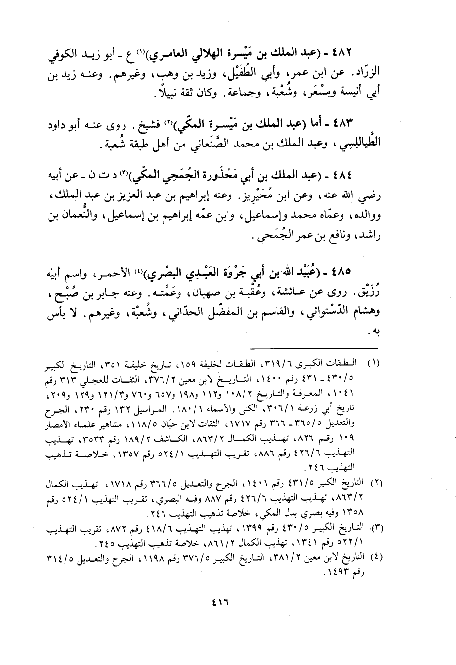 [2] التاريخ الكبير 5/ 431 رقم 1401، الجرح والتعديل 5/ 366 رقم 1718، تهذيب الكمال 2/ 863، تهذيب التهذيب 6/ 426 رقم 887 وفيه البصري، تقريب التهذيب 1/ 524 رقم 1358 وفيه بصري بدل المكيّ، خلاصة تذهيب التهذيب 246.