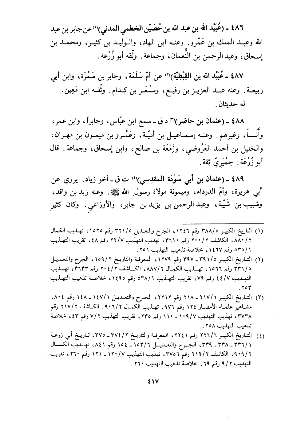 [2] التاريخ الكبير 5/ 396- 397 رقم 1279، المعرفة والتاريخ 2/ 659، الجرح والتعديل 5/ 331 رقم 1566، تهذيب الكمال 2/ 887، الكاشف 2/ 204 رقم 3633، تهذيب التهذيب 7/ 44 رقم 79، تقريب التهذيب 1/ 538 رقم 1495، خلاصة تذهيب التهذيب 253.