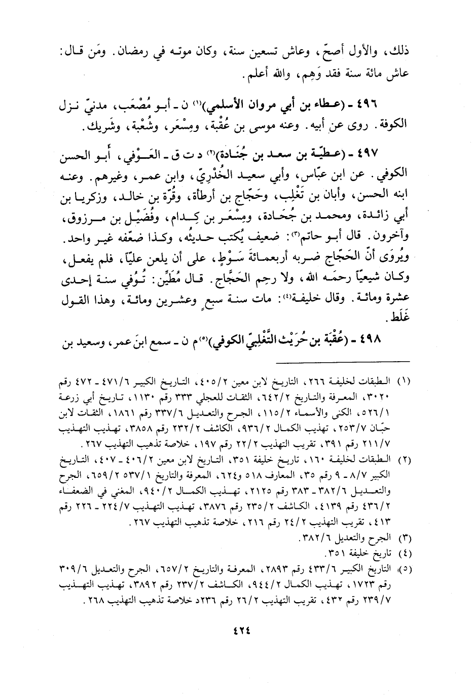 [2] الطبقات لخليفة 160، تاريخ خليفة 351، التاريخ لابن معين 2/ 406- 407، التاريخ الكبير 7/ 8- 9 رقم 35، المعارف 518 و 624، المعرفة والتاريخ 1/ 537 2/ 659، الجرح والتعديل 6/ 382- 383 رقم 2125، تهذيب الكمال 2/ 940، المغني في الضعفاء 2/ 436 رقم 4139، الكاشف 2/ 235 رقم 3876، تهذيب التهذيب 7/ 224- 226 رقم 413، تقريب التهذيب 2/ 24 رقم 216، خلاصة تذهيب التهذيب 267.