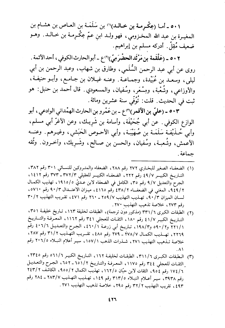 502- (علقمة بن مرثد الحضرميّ) [2] ع- أبو الحارث الكوفي، أحد الأئمة.
