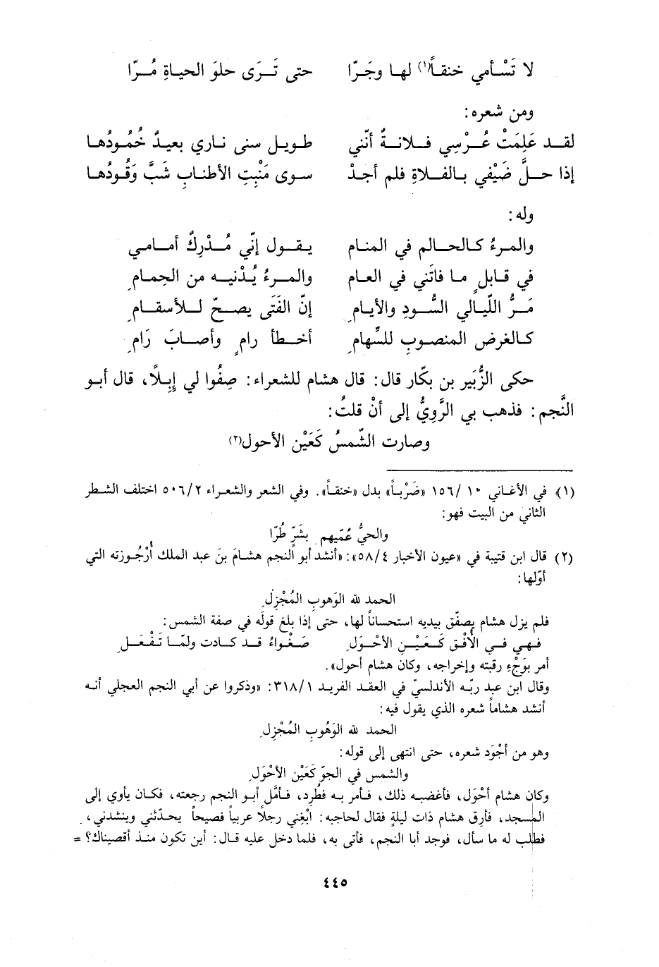 [1] في الأغاني 10/ 156 «ضربا» بدل «خنقا» . وفي الشعر والشعراء 2/ 506 اختلف الشطر الثاني من البيت فهو: