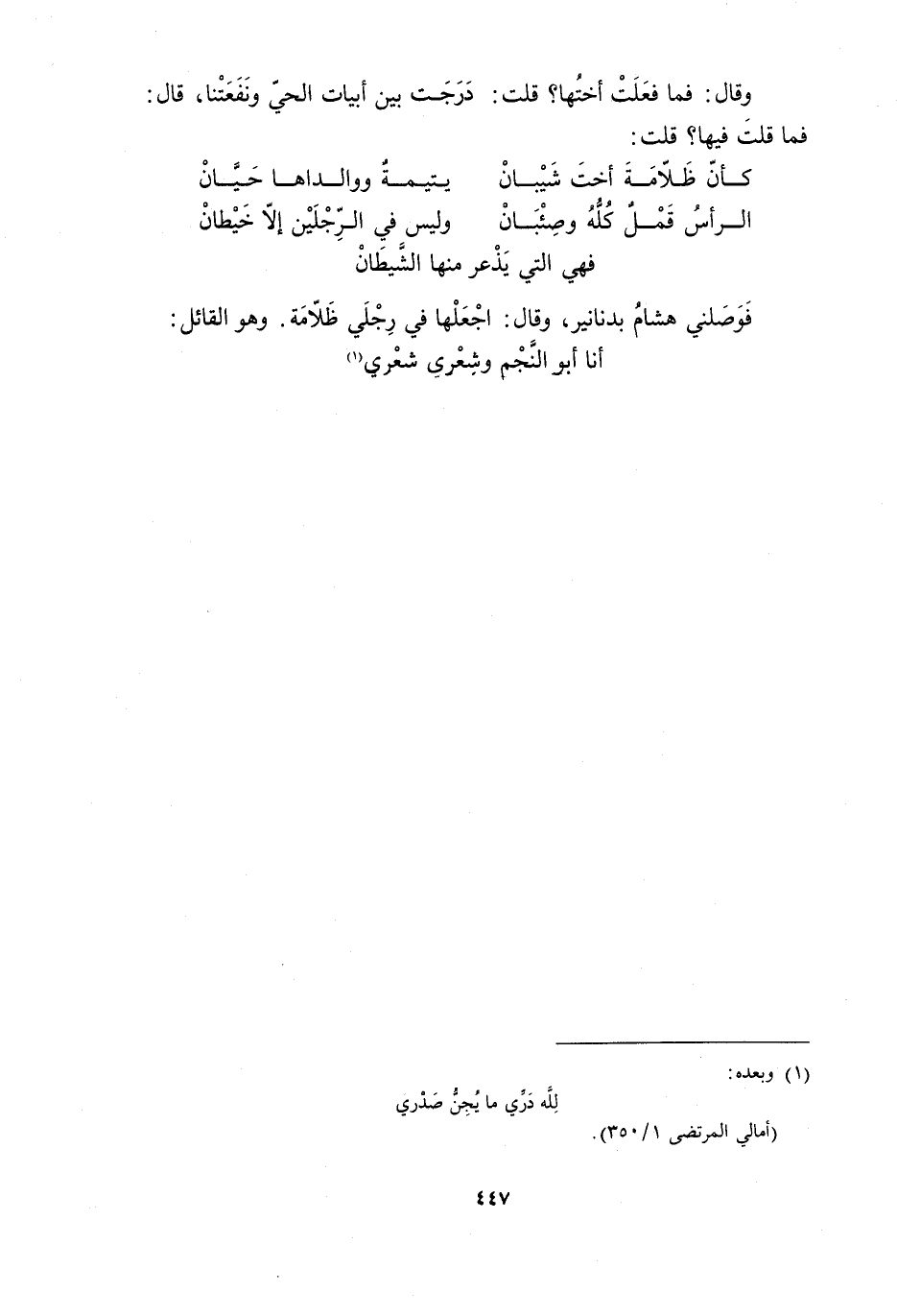 (أمالي المرتضى 1/ 350) .