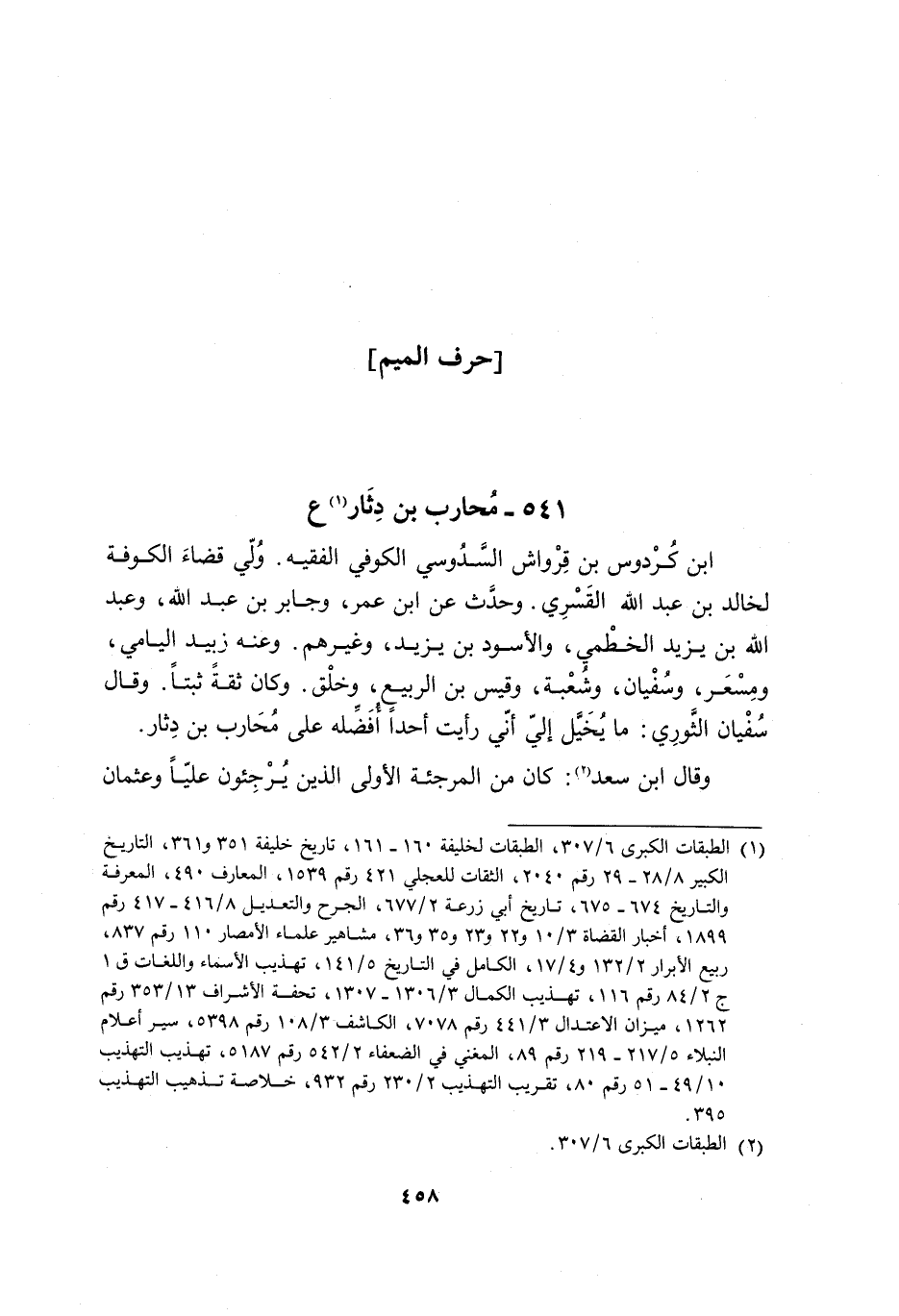 [1] الطبقات الكبرى 6/ 307، الطبقات لخليفة 160- 161، تاريخ خليفة 351 و 361، التاريخ الكبير 8/ 28- 29 رقم 2040، الثقات للعجلي 421 رقم 1539، المعارف 490، المعرفة والتاريخ 674- 675، تاريخ أبي زرعة 2/ 677، الجرح والتعديل 8/ 416- 417 رقم 1899، أخبار القضاة 3/ 10 و 22 و 23 و 35 و 36، مشاهير علماء الأمصار 110 رقم 837، ربيع الأبرار 2/ 132 و 4/ 17، الكامل في التاريخ 5/ 141، تهذيب الأسماء واللغات ق 1 ج 2/ 84 رقم 116، تهذيب الكمال 3/ 1306- 1307، تحفة الأشراف 13/ 353 رقم 1262، ميزان الاعتدال 3/ 441 رقم 7078، الكاشف 3/ 108 رقم 5398، سير أعلام النبلاء 5/ 217- 219 رقم 89، المغني في الضعفاء 2/ 542 رقم 5187، تهذيب التهذيب 10/ 49- 51 رقم 80، تقريب التهذيب 2/ 230 رقم 932، خلاصة تذهيب التهذيب 395.