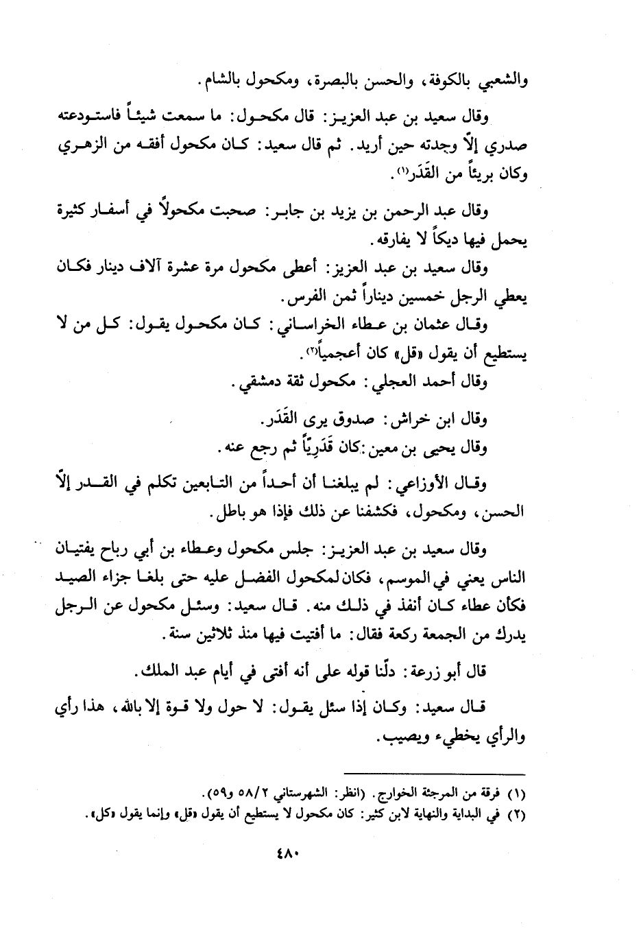 [2] في البداية والنهاية لابن كثير: كان مكحول لا يستطيع أن يقول «قل» وإنما يقول «كل» .