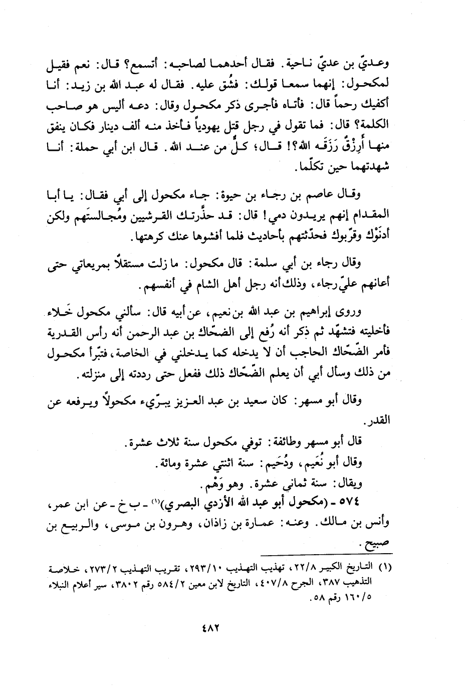 وقَالَ أَبُو مسهر: كَانَ سَعِيد بْن عَبْد العزيز يبرّئ مكحولا ويرفعه عَنِ القدر.