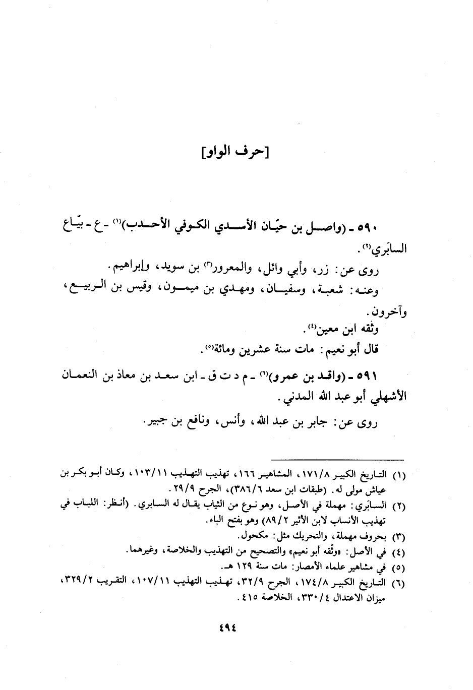 590- (واصل بْن حيّان الأسدي الكوفي الأحدب) [1]- ع- بيّاع السابَري [2] .