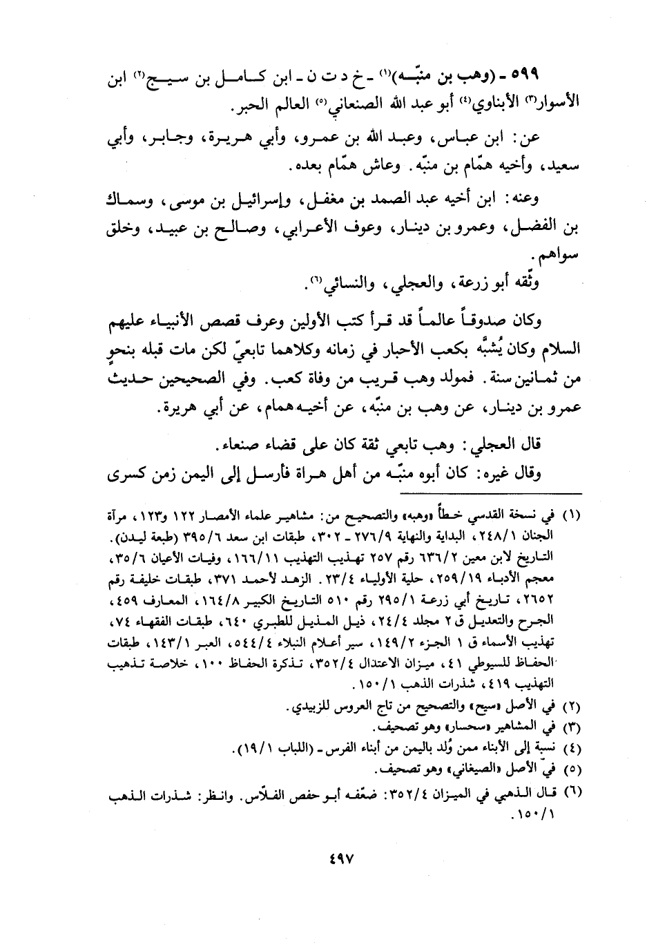 599- (وهب بن منبّه) [1]- خ د ت ن- ابن كامل بْن سيج [2] ابن الأسوار [3] الأبناوي [4] أبو عبد الله الصنعاني [5] العالم الحبر.